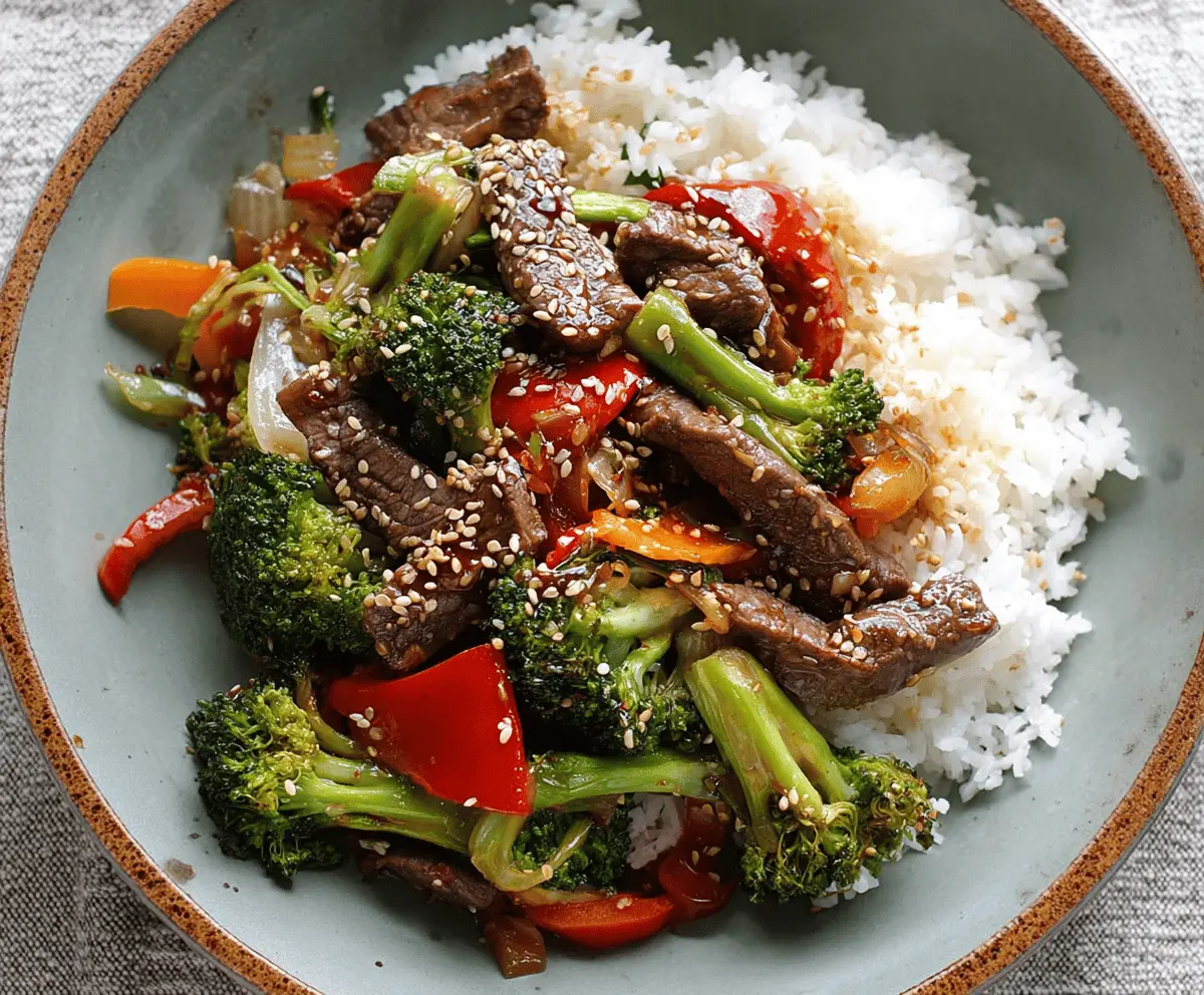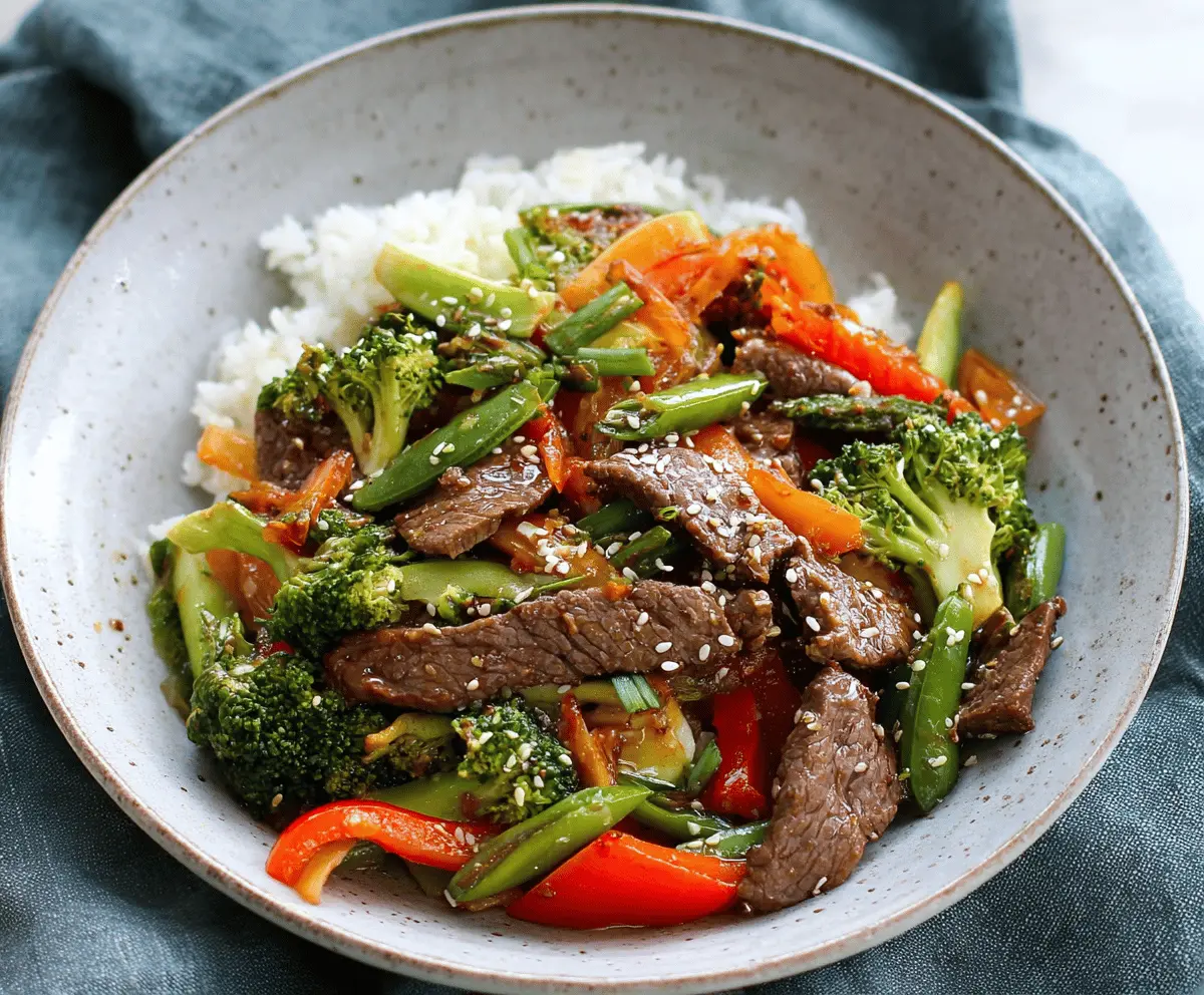 Enjoy your healthy, quick, and delicious beef stir fry with fresh vegetables!