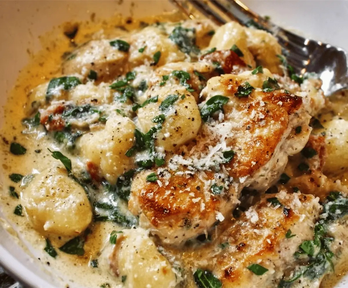 Serving this meal with a simple green salad or some steamed veggies makes it feel balanced, and I always like having a crusty piece of bread nearby to scoop up any extra sauce. It’s one of those dishes that’s great for sharing, and I often find friends asking me to make it again — which says a lot, because who turns down cheesy chicken and gnocchi?