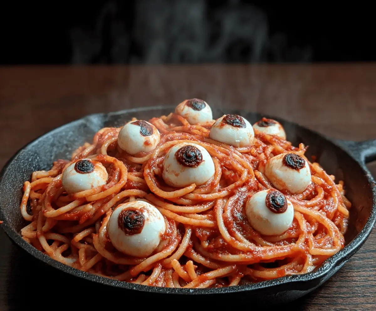 Bloody Spaghetti with Mozzarella Eyeballs is a fun and spooky twist on a classic spaghetti dish that’s perfect for Halloween or any time you want to surprise your guests. Think of rich, red tomato sauce covering perfectly cooked spaghetti, topped with mozzarella balls that look just like eyeballs—complete with little olive slices for pupils. It’s a playful way to bring a little creepy fun to the dinner table without losing all the flavors you love.