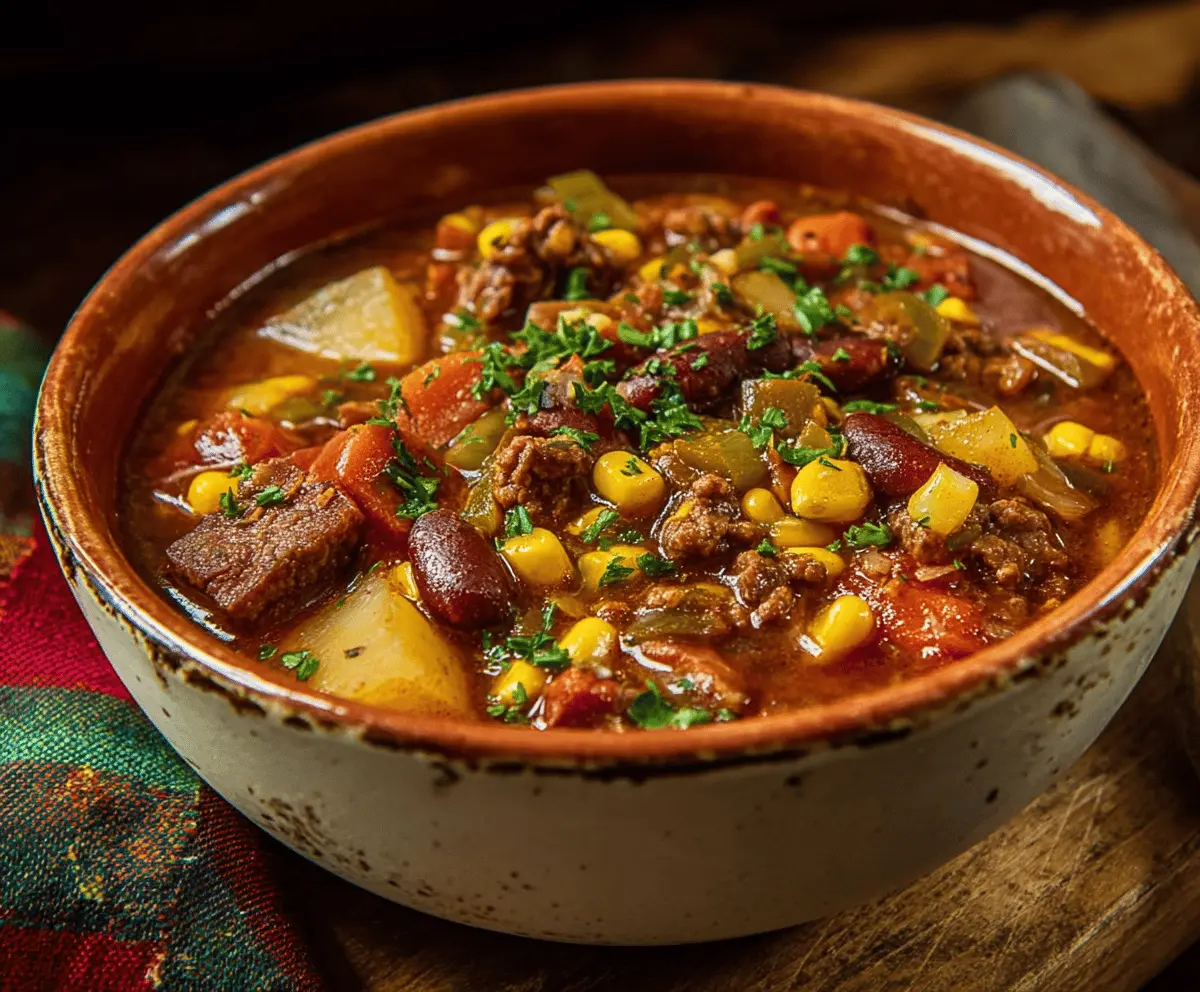 Cowboy Stew is a hearty, comforting dish packed with tender chunks of beef, potatoes, beans, and a rich tomato broth that’s perfect for warming you up on a chilly day. This stew has a nice mix of textures from the soft veggies to the hearty meat, making it a satisfying one-pot meal that feels like a big, cozy hug.