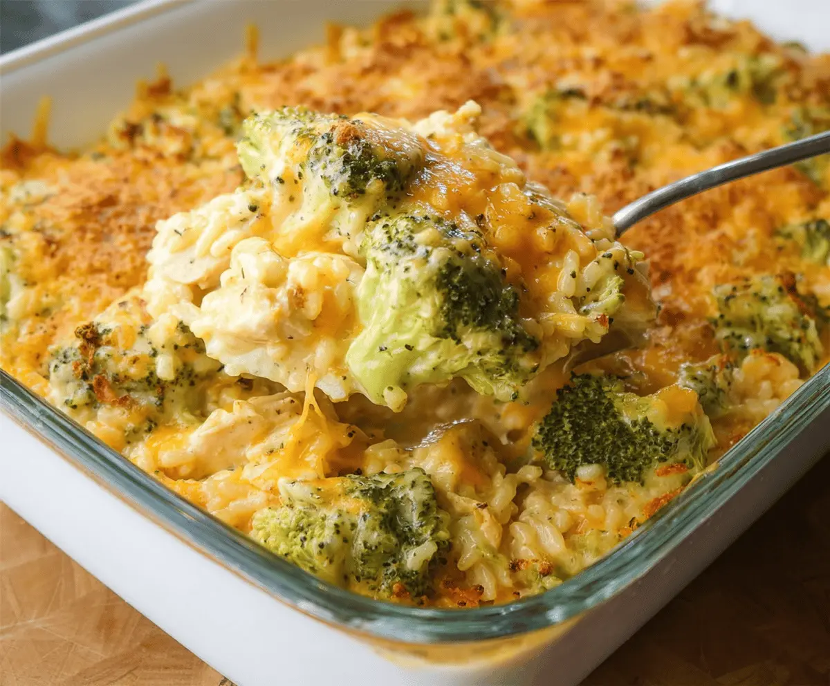 Creamy Chicken Broccoli Rice Cheese Casserole