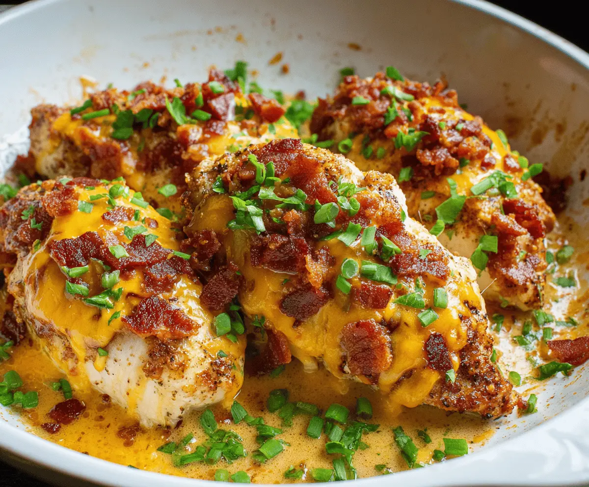 Patience is key here. Don’t rush searing and baking, and your chicken will stay tender beneath that cheesy, bacon-loaded topping.