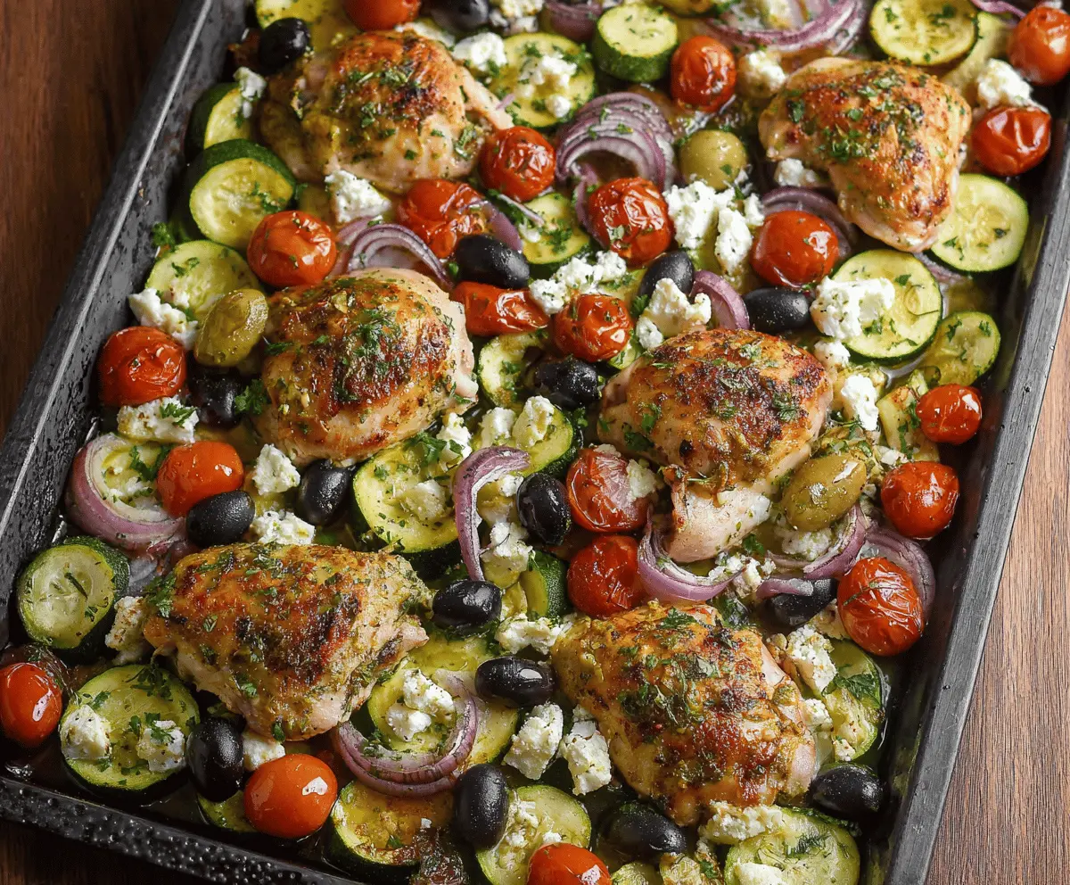Delicious Mediterranean Chicken and Zucchini Sheet Pan meal with colorful vegetables and herbs, perfect for a healthy dinner