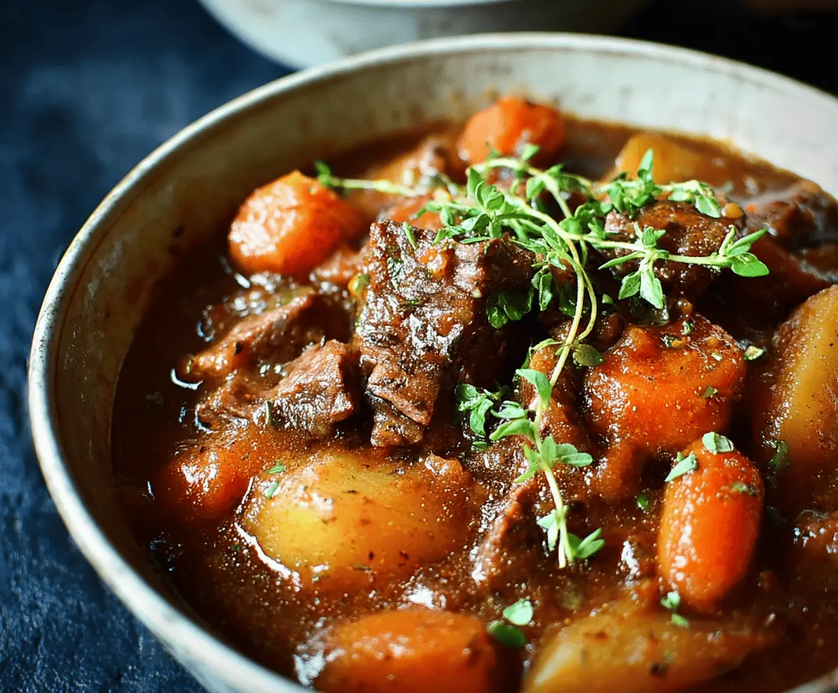 This stew pairs wonderfully with crusty bread, creamy mashed potatoes, or buttery dumplings — perfect for soaking up all that rich, savory sauce!